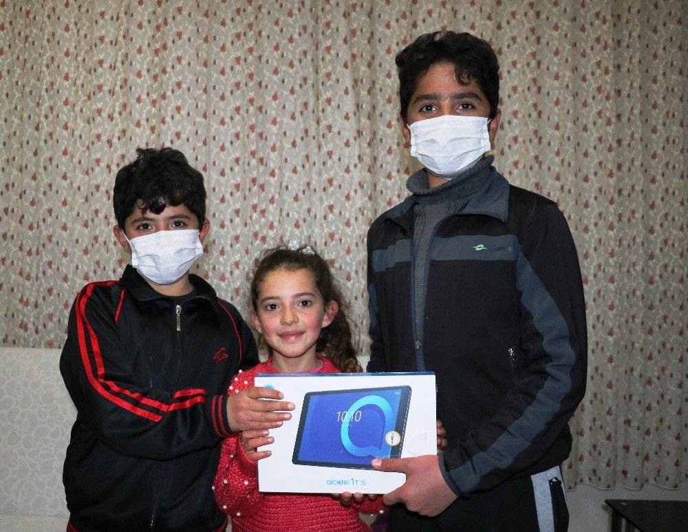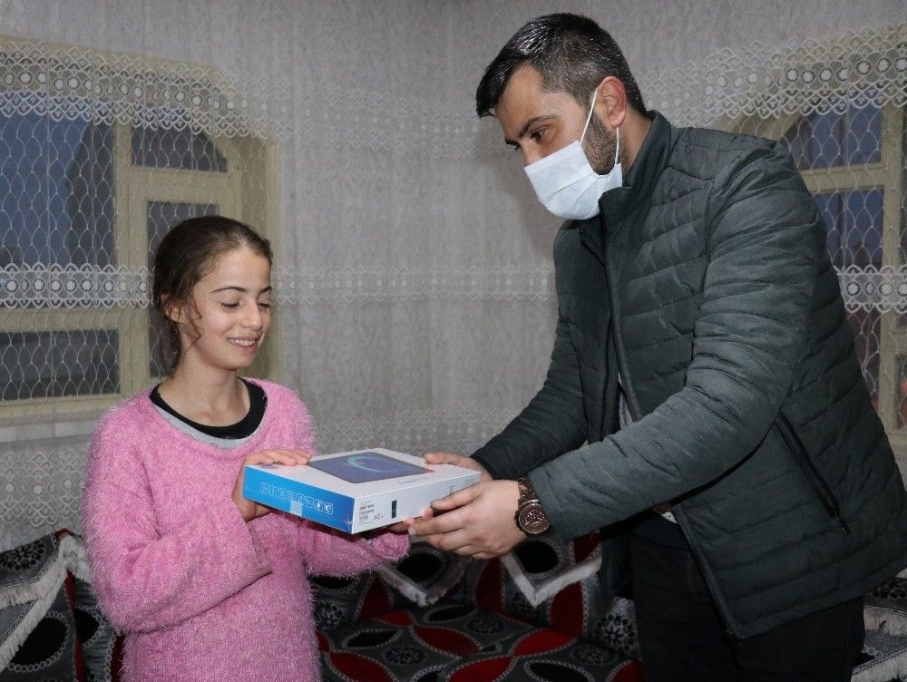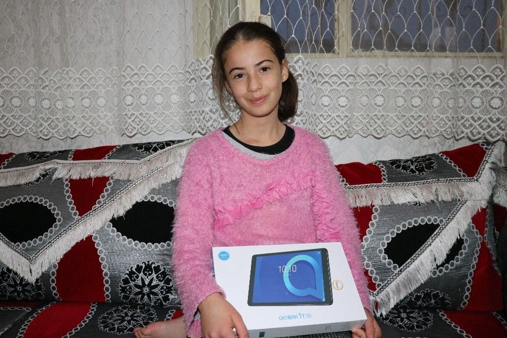 4. sınıf öğrencisi Deniz Koçak da, "Tablet ya da bilgisayarım olmadığı için canlı derse gidemiyordum. Çok mutluyum. Hayırseverlere çok teşekkür ediyorum" diye konuştu.