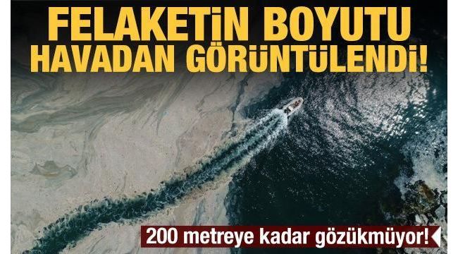 Marmara Denizi'nde ortaya çıkan müsilaj İstanbul’da etkisini sürdürüyor. Suadiye Sahili'nde kirlilik havadan böyle görüntülendi.