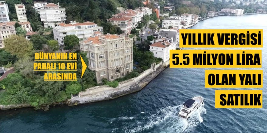 Türkiye'nin en pahalı gayrimenkulü olarak gösterilen yalı için, söz konusu fiyata satıldığı ve tapuya işlendiği takdirde yıllık 5.5 milyon TL değerli konut vergisi ödenecek.