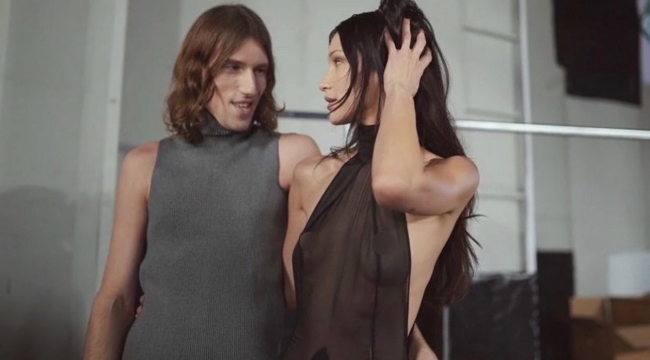 Kural bozmayan güzel model, dün yürüdüğü podyumda da transparan bir parça tercih etti. Hadid, elbisenin altına hiçbir şey giymedi.