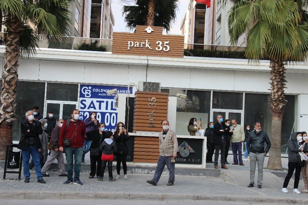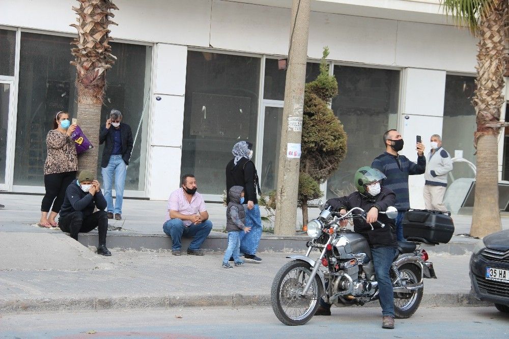İzmir Bayraklı'daki Haydar Aliyev Caddesi üzerinde bulunan Canbazoğlu Sitesi, depremde hasar görmesi nedeniyle kontrollü şekilde yıkılıyor. Yıkım işlemini film izler gibi izleyenlerin yanı sıra bazı vatandaşlar da o anlar cep telefonları kamerasıyla kaydetti. Kimisi aracı seyir halindeyken görüntü alırken, kimisinin de ellerindeki alışveriş poşetleriyle cep telefonuna sarılması dikkat çekti.