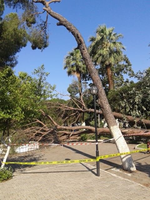 İlçe merkezinde bulunan Turgut Özal Parkı'ndaki çam ağaçları yıkıldı. Ağaçların devrildiği sırada altında kimsenin bulunmaması sevindirdi.