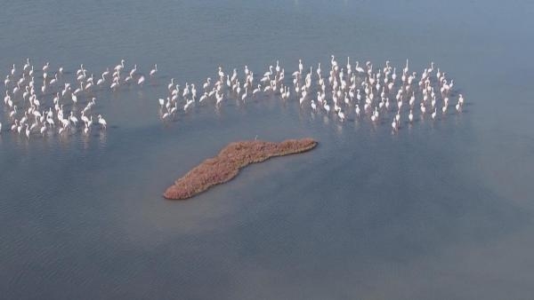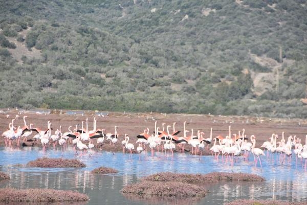 MUĞLA'nın Milas ve Bodrum ilçeleri arasındaki Tuzla Sulak Alanı ve Tabiat Parkı'na gelen binlerce flamingolar, renkli görüntüler oluşturdu.
