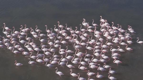 Flamingolar sulak alanda görsel şölen oluşturdu