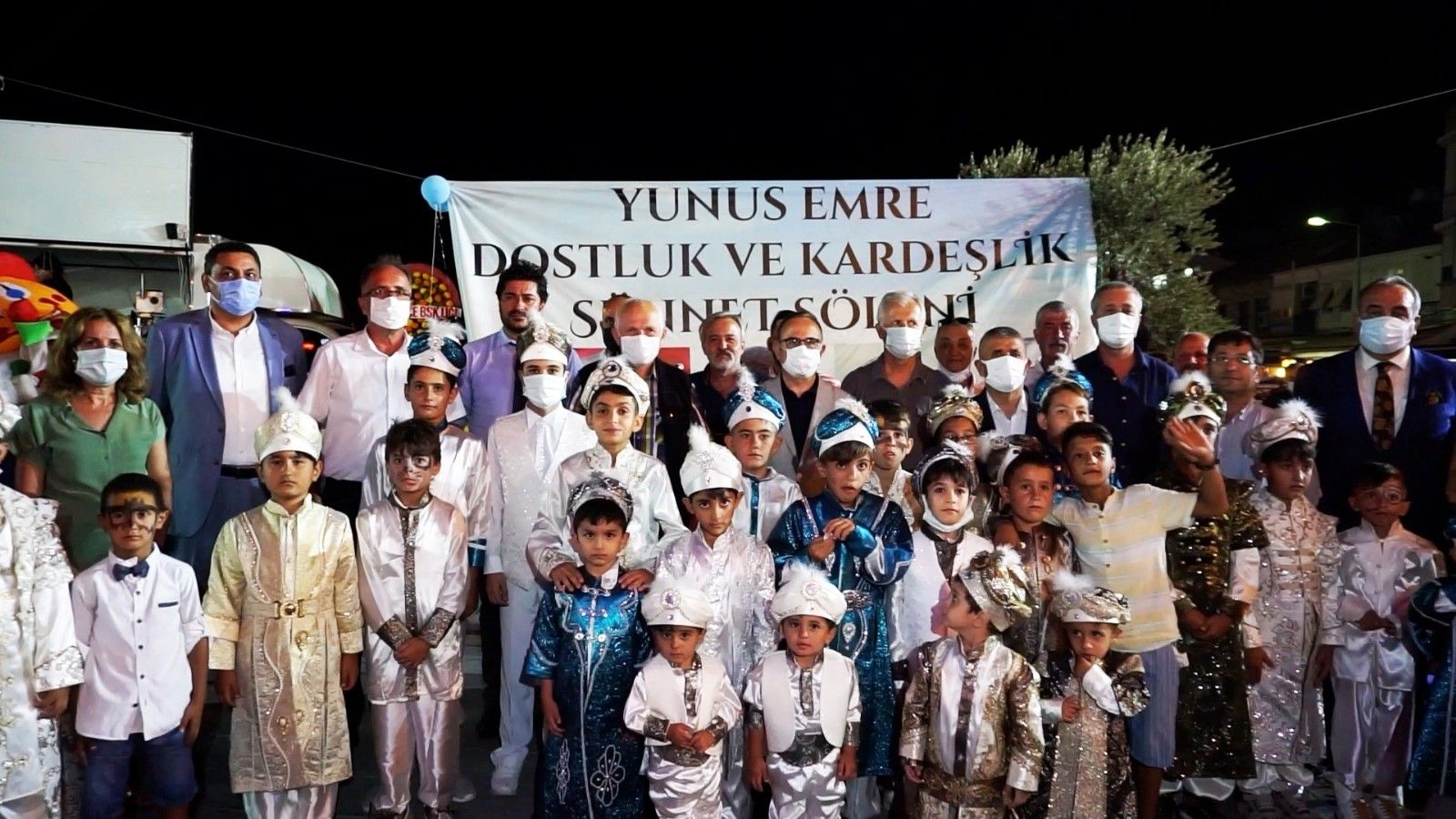 AK Parti Foça İlçe Başkanlığı ve Yunus Emre Dernekleri Federasyonunun birlikte düzenlediği "Yunus Emre Dostluk ve Kardeşlik Sünnet Şöleni" kapsamında 35 çocuk, erkekliğe adım atarak sünnet oldu.