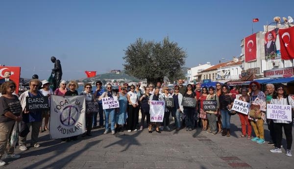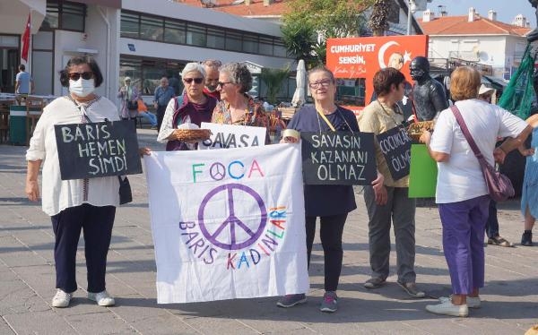 İsrail'in abluka altındaki Gazze'ye saldırıları, Foça'da protesto edildi. Reha Midilli Caddesi Sevgi Yolu güzergahında yürüyüş ile başlayan protesto eylemine, bazı kadın inisiyatif ve platform ile sivil toplum kuruluşu temsilcileri ve vatandaşlar destek verdi. Çoğunluğu kadın olan katılımcılar ellerinde 'Kadınlar Barış İstiyor', 'Çocuklarımız Ölmesin', 'Savaşın Kazananı Olmaz', 'Barış Hemen Şimdi', 'Savaşa Hayır' ve 'Savaşa Son' yazılı dövizler taşıyarak Nihat Dirim Barış ve Demokrasi Meydanı'na geldi. Kalabalık, kendileri gibi destek verenlerin yakalarına da siyah kurdele taktı. Meydanda sessiz protesto yapan katılımcılar adına yazılı basın açıklaması yapıldı.