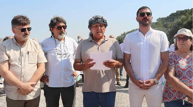 Foça Kent Konseyi’nin çağrısı ve organizasyonuyla toplanan katılımcılar adına basın açıklamasını ise Yeniköy Mahallesi Muhtarı Hasan Ercan okudu. 6 Mayıs 2019 tarihinde yapılan basın açıklamasından hatırlatmalar yapan Ercan 2 yılda yaşanan olumsuzlukları ve gelinen durumu da ortaya koydu. Hasan Ercan ; “ Her şeyin bir sınırı olduğuna göre para kazanmanın da bir sınırı olmalıdır. Daha dumanı üstünde tüten cürufu başka atıklarla beraber vahşice depolayacaksın, sonrada diyeceksin ki açığa çıkan gazlar, nem ve sıcağın etkisiyle yangın çıktı. Derhal bu tesis kapatılmalı, Gölyüzü mevkii kurtarılmalıdır. Yer altı sularımızın havzası olan bu vadi derhal boşaltılmalıdır. Bu sözleri söyledikten sonra 2 yıl üç ay geçmiş. Bu süreç içinde ne oldu? Sayısız yangınlar çıktı. En son 12 Ağustos 2021’de, Bu sefer çam ağaçlarımız, zeytinlerimiz, canlarımız yandı. İşte hala kokusunu duyuyoruz. Daha üç gün önce demir çelik tesinin depolama alanında yangın çıktı. Nefes alamadık. Bu tepeler dağ oldu. Ağaçlarımız daha da karardı. Sularımız daha da kirlendi. Topraklarımız daha da zehirlendi. Bitiyoruz ölüyoruz. Yeter artık. Buna bir son verelim. Sel, deprem, yangın, kuraklık, her gün başka bir felaket. Derelerimiz, denizlerimiz bir bir tükeniyor. Tabiat Ana isyan ediyor. Daha ne bekliyoruz. “ dedi.