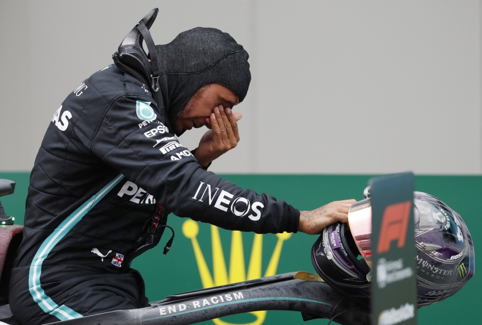 Formula 1'de sezonun 14. yarışı Mercedes takımından Lewis Hamilton'ın zaferi ile sonuçlandı. Gözyaşlarına boğulan Hamilton aynı zamanda kariyerinin 7. şampiyonluğunu ilan etti. Hamilton, yarışı ikinci tamamlayan Sergio Perez (Racing Point) ve Sebastian Vettel (Ferrari) ile birlikte kupasını aldı. Podyuma çıkan pilotlara kupalarını Türkiye Büyük Millet Meclisi Başkanı Mustafa Şentop teslim etti.