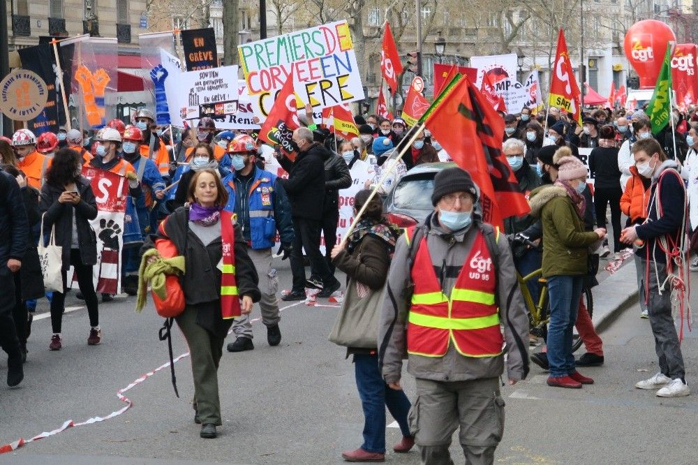 Fransa'da 175 kent ve kasabada işten çıkarılmalara karşı protesto düzenlendi. Genel İş Sendikası'nın (CGT) çağrısı üzerine düzenlenen gösterilerde, göstericiler Covid-19 salgını tedbirleri çerçevesinde kapatılan iş yerlerinde çalışanların işlerini kaybetmekle karşı karşıya kaldıklarını belirtti. Başkent Paris'te bulunan Republique Meydanı'nda toplanan göstericiler, Nation Meydanı'na yürüdü. Göstericiler, protestolar sırasında sık sık hükümete istifa çağrısında bulundu.