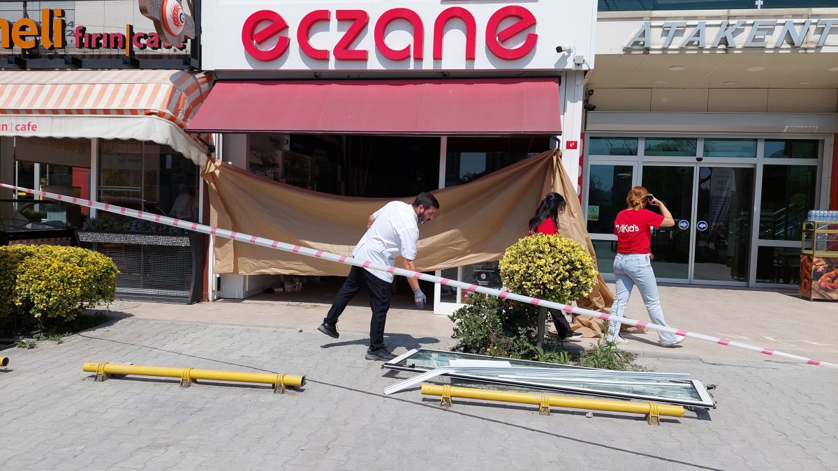 Çarpmanın etkisi ile ilaçlar dükkanın her yerine dağılırken, ilaçlardan biri eczane çalışanının kafasına isabet etti.