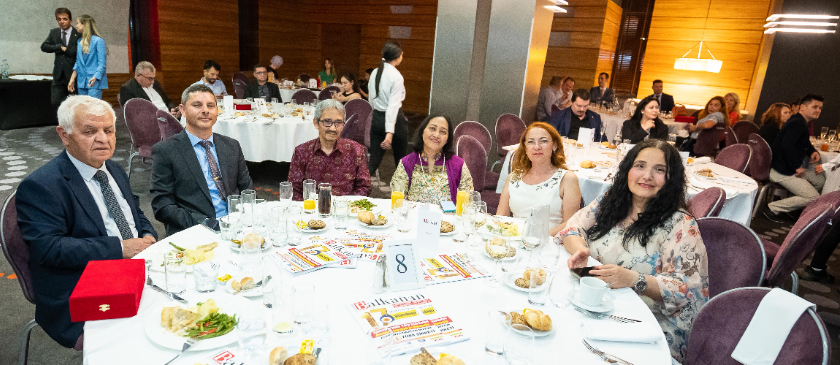 Romanya’da yayınlanan ilk ve tek günlük gazete olan Gazete Balkan’ın 17’inci yayın yılı Bükreş Sheraton Hotelde düzenlenen törenle kutlandı. Marka Ödül töreninin gerçekleştirilen geceye Bükreş Büyükelçiliği Müsteşarı Erdal Onat, Köstence Başkonsolosu Emre Yurdakul, Endonezya’nın Bükreş Büyükelçiliği Müsteşarı Bambang Prihartadi, Türkmenistan’ın Bükreş Büyükelçiliği 3. Sekreteri Selbi Muhammedova ve Büyükelçilik ataşelerinden Mergen Saharov’un yanı sıra TİKA Romanya Koordinatörü Hasan Burak Ceran, Bükreş Türkiye Maarif Vakfı Romanya Direktörü Alpaslan Ateş, Yunus Emre Enstitüsü Bükreş Şube Müdürü Mustafa Yıldız, Köstence Şube Müdürü Tuna Balkan, Bükreş Eğitim Müşaviri Seyfi Özkan, Bükreş Ticaret Müşavirliğinden Murat Özge, askeri ataşelerimiz Albay Alper Dilsiz, Albay Çağrı Sağlam, Romanya Parlamentosu Râmnicu Vâlcea Milletvekili Lazer Ion Marian, Romanya Devlet Buluşlar ve Ticari Markalar Dairesi Genel Müdürü Cătălin Burcescu, katıldı.