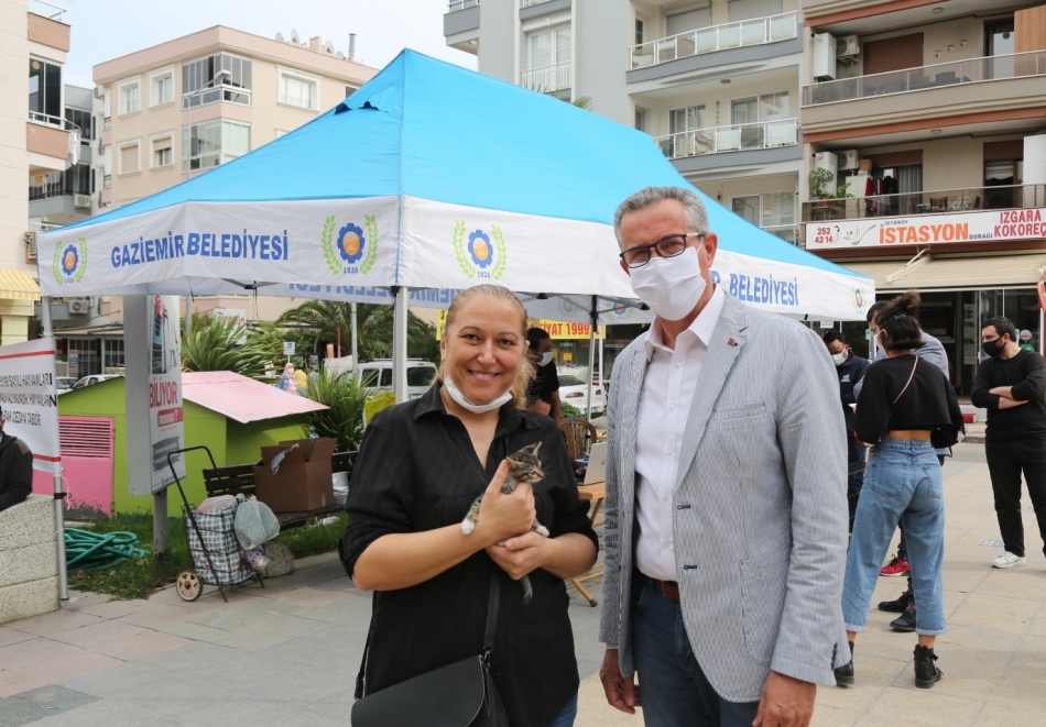 Gaziemir Belediyesi, veterinerlik hizmetleri kapsamında tedavisini ve bakımını yaptığı kedi ve köpekleri yeni bir yuvaya da kavuşturuyor. Belediyenin sağlığına kavuşturduğu yavru hayvanlar ile hayvan severlerin bir araya geldiği sahiplendirme etkinliğinde can dostlar yeni yuvalarına kavuştu. Gaziemir Belediye Başkanı Halil Arda’nın da katıldığı etkinlikte, belediyenin veterinerlik hizmetleri kapsamında sokak hayvanları ile ilgili yaptığı çalışmalar ve görevleri hakkında da yurttaşlara bilgi verildi.