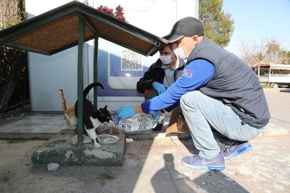 Korona virüsü tedbirleri kapsamında ilan edilen sokağa çıkma kısıtlamalarında sokak hayvanlarını unutmayan Gaziemir Belediyesi, can dostların mama ve suya ulaşabilmesi için destek oluyor.