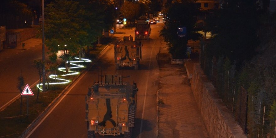 Türkiye'nin çeşitli birliklerden gönderilen askeri personel ve zırhlı personel taşıyıcı askeri araç konvoyu, gece Hatay'ın Kırıkhan ilçesinden Suriye sınır hattına doğru hareket etti.