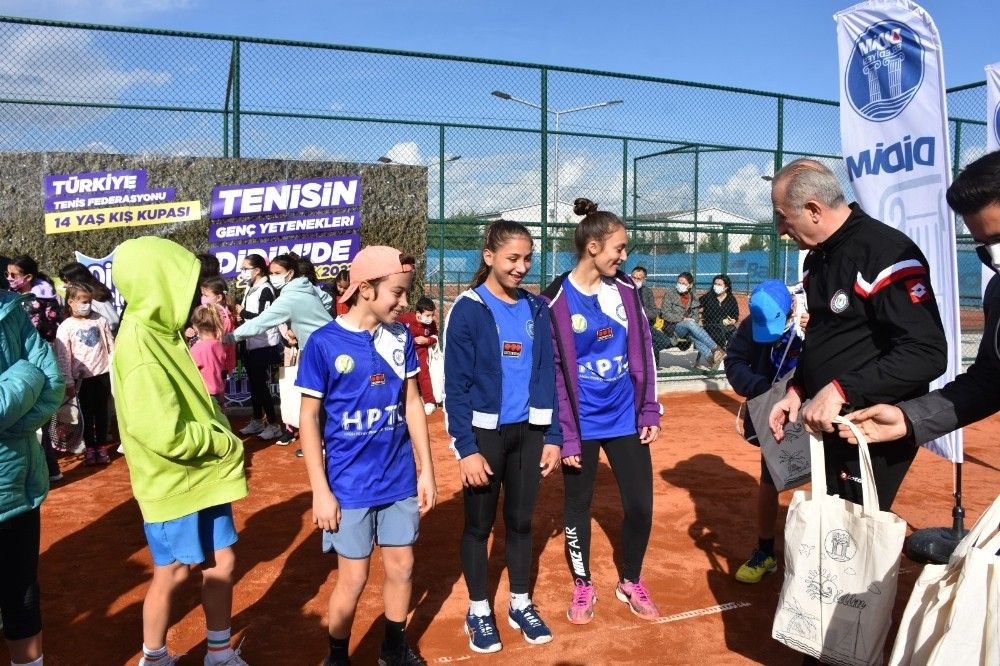 Turnuva sonrası Başkan Atabay, yetenekli genç tenisçilere içerisinde Didim Belediyesi'nin hediyelerinin bulunduğu çantaları takdim etti.