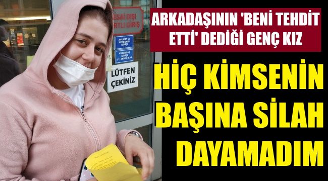 Nöbetçi mahkemeye ifade veren Gaye U., "Bayan arkadaşım konuşmak için beni evine çağırdı. Mutfağa geçtik ve konuşmaya başladık. Bu sırada evde biri daha vardı. Ancak ben eve girince, o 2 dakika sonra çıktı. Sonra biz bayan arkadaş ile onun görüştüğü erkek arkadaşının eşine gönderilen fotoğrafları konuştuk. Bu sırada bayan arkadaşın erkek arkadaşı aradı. Telefonun sesini hoparlöre aldı ve birlikte konuşmaya başladık. Telefonla konuştuğumuz sırada eve polisler geldi. Bu sırada biz bayan arkadaş ile tartışmadık. Aramızda herhangi bir darp olmadı. Olay günü yanımda silah yoktu. Bu nedenle kendisine silah doğrultmadım. Polisler geldiklerinde biz mutfaktaydık. Polisler silah sordular. Benim silahtan haberim yoktu. Polisler balkonda bir silah bulmuşlar. Bu silahın benimle ilgisi yoktur. Bu silahla müştekileri tehdit etmiş değilim. Üzerime atılı suçlamayı kabul etmiyorum. Müştekinin, onun evli bir kişi ile ilişkisini bu kişinin eşine söyleyeceğimden korktuğu için bu şekilde ifade verdini düşünüyorum. Ben eve girdikten 5 dakika sonra polis geldi. Sanki ben gelmeden önce aranmış gibiydi. Üzerime atılı suçlamayı kabul etmiyorum" dedi.