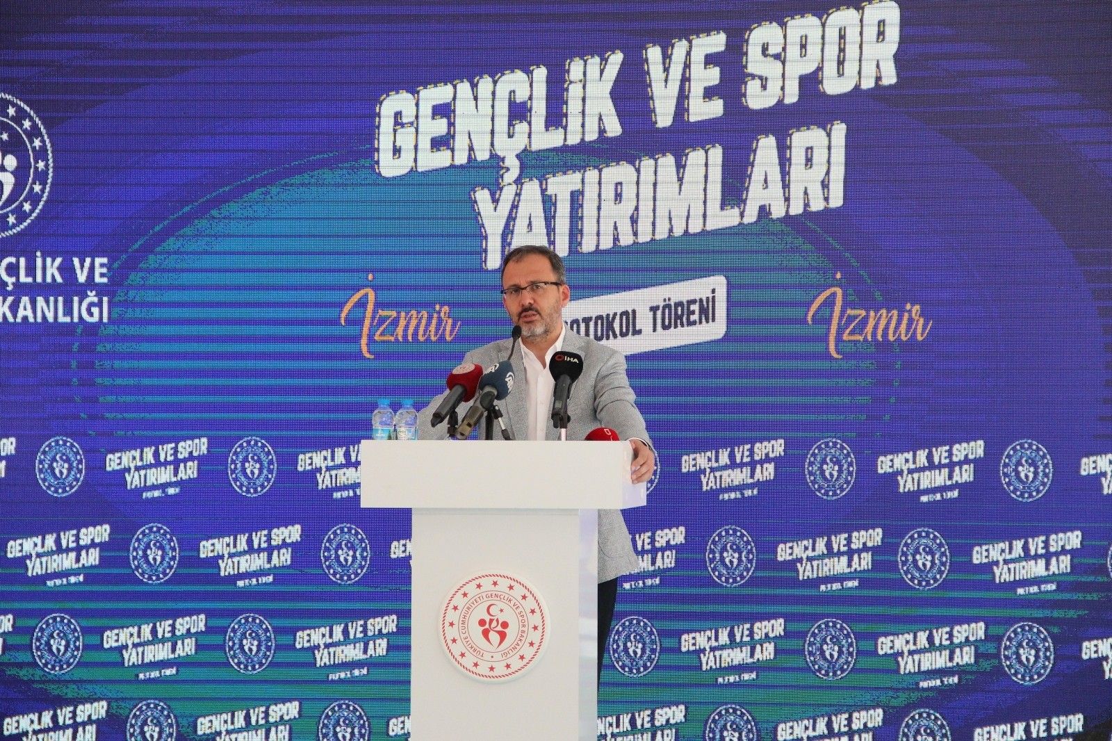 Protokolle İzmir'in ilçelerine yeni salon, spor tesisi, havuzlar ve gençlik merkezleri yapılacağını dile getiren Kasapoğlu, tüm paydaşlarla el ele vererek Türkiye'nin birbirinden değerli gençleri için çalışmaya devam edeceklerini ifade etti.