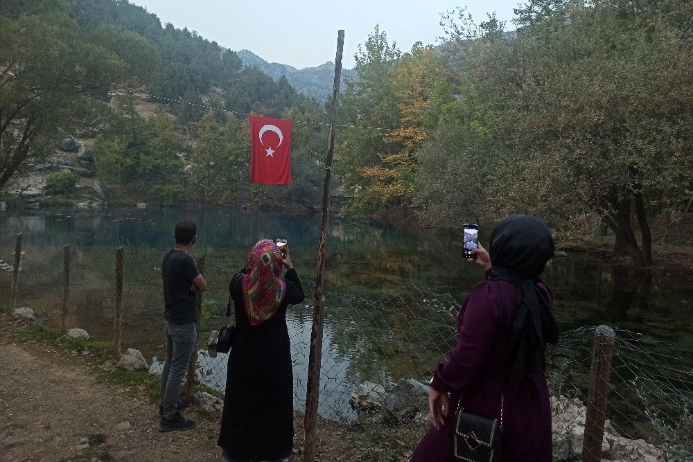 Kahramanmaraş'ta Tekir Mahallesinde bulunan Yeşilgöz, suyunun rengi ve eşsiz doğasıyla görenleri hayran bırakıyor