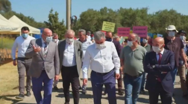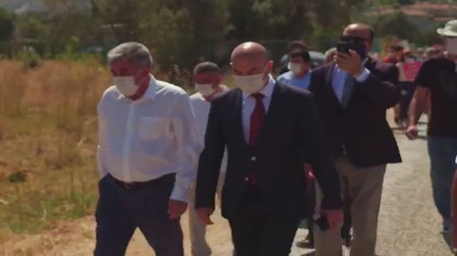 İzmir Büyükşehir Belediye Başkanı Tunç Soyer, CHP'nin çiçeği burnunda Parti Meclisi Üyesi Rıfat Nalbantoğlu'nu da yanına alarak, Güzelbahçe Belediyesi'ne ve halkın direnişine destek için, proje alanına gitti. Büyükşehir Belediyesi Genel Sekreteri ve Büyükşehir Meclis Üyesi Kazım Çam'ın da yer aldığı destek ziyaretinde oldukça ilginç bir diyalog gerçekleşti.