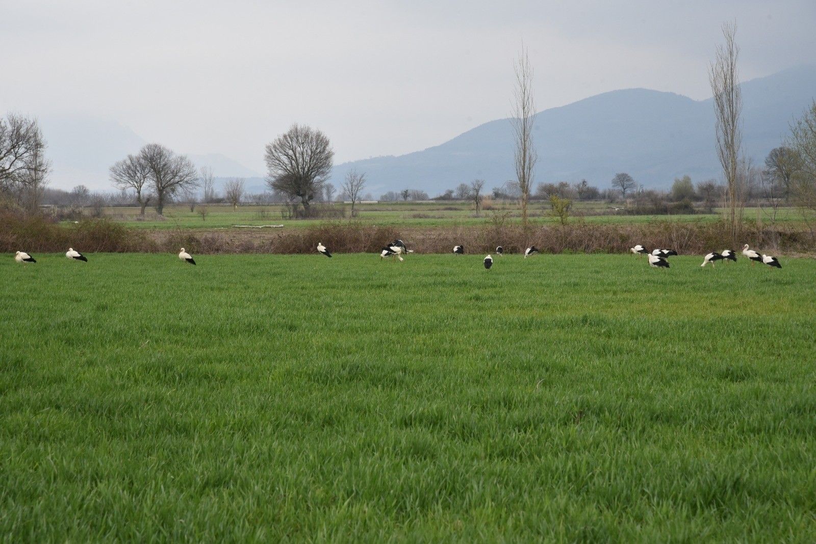 Balıkesir'in Sındırgı ilçesi, göç yolundaki leyleklerin uğrak mekanı oldu.