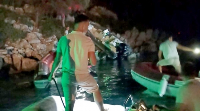 Edinilen bilgiye göre; Göcek Mahallesi'nden gece 02.00 sıralarında lastik botla denize açılan iki kişi, Bedri Rahmi Koyu'nda kayalıklara çarptı. Kayalıklara çıkan botta bulunan İ.D. ile İ.S. yaralandı.