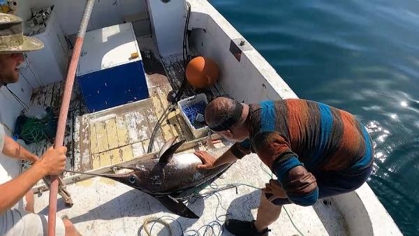 Gökçeada'da yunuslar eşliğinde kılıç balığı avı
