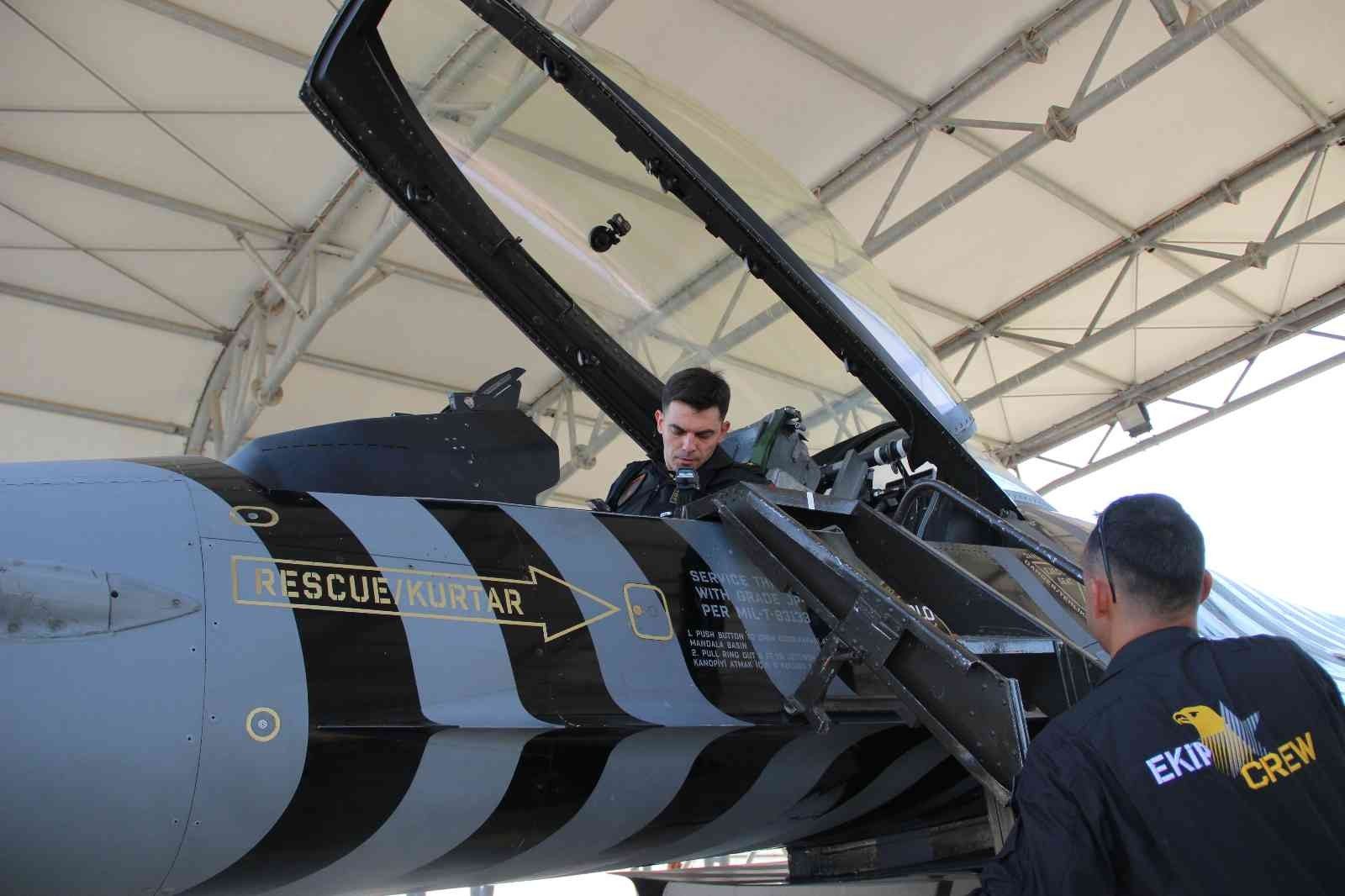 F-16 uçağında 53 bin feet irtifaya kadar çıktığını anlatan Binbaşı Mert, "Konya üzerinde 53 bin feet irtifaya çıktığımda Akdeniz ile Karadeniz'i aynı anda görebiliyordum. Gösterilerde ise minimum 100 feet (30 metre), maksimum 15 bin feet (4 bin 500 metre) aralığına kadar irtifamız var. Sürat olarak da 100 knot (saatte 180 km) ve 600 (saatte bin 200 km) knot aralığında süratimiz oluyor" diye konuştu.