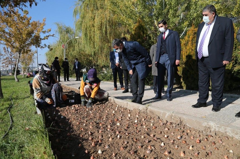 Gölbaşı Belediyesi bünyesinde üretilen binlerce aromatik bitkiyi Gölbaşı'nın parkları ile buluşturan Başkan Ramazan Şimşek, son olarak ise Atatürk Sahil Parkı'na ziyaret gerçekleştirdi. Park ve bahçeler personeli ile birlikte Gölbaşı'nın park ve bahçelerini gezen Ramazan Şimşek, binlerce laleyi toprakla buluşturdu. Toplamda yüz bin lalenin Şelale Parkı, Alparslan Türkeş Parkı, Cumhuriyet Parkı'na dikileceğini söyleyen Şimşek "Bugün toplamda yüz bin laleyi toprakla buluşturuyoruz. Çiçeklerimiz Gölbaşımızın güzelliğine güzellik katacak" ifadelerini kullandı.