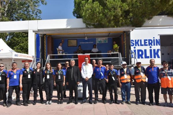 İzmir İl Afet ve Acil Durum Müdürü Kartal Muhcı, "AFAD olarak vatandaşlarımıza afet durumdan neler yapacaklarını anlatıyoruz. Afetlere dayanıklı bir toplum nasıl olacağımız yönde eğitimler veriyoruz. Türkiye bir afet ülkesi. Geçmişte birçok afet yaşadık. Son olarak Ege Denizi'nde gerçekleşen 5.1 büyüklüğündeki depremde afet gerçeğini bir kez daha hatırlattı. Bu nedenden de bir kozumuz afetlere farkında olmak. Sayın bakanımızın talimatıyla geçen yıl afet eğitim yılı ilan edilmişti. Bu yılda tatbikat yılı ilan edildi. Bu nedenle ülke genelinde vatandaşlarımızı bilinçlendiriyoruz. Deprem sırası simülasyonunda da aynı şeyi amaçlıyoruz. Standlarımıza ve deprem simülasyon TIR'ımıza ilgi yüksek. Çünkü deprem ülkedeyiz. Gölcük ve Erzincan depremleri simüle ediliyor. Son depremde afetlerin her an olabileceğini gösterdi. O nedenle bu eğitimler önemli. Tüm vatandaşlarımızı da fuarın son gününe kadar burada kalacak TIR'ımıza bekliyoruz" dedi.