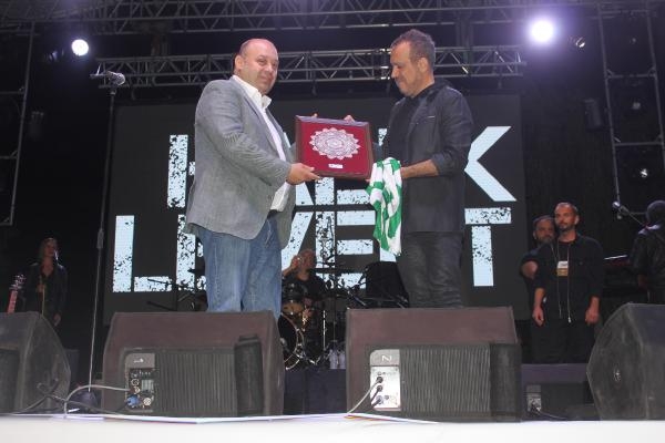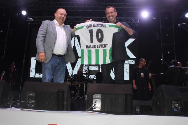 Konserin sonunda Belediye Başkanı İbrahim Palaz, Haluk Levent'e Gönen Belediyespor forması ile iğne oyası hediye etti.