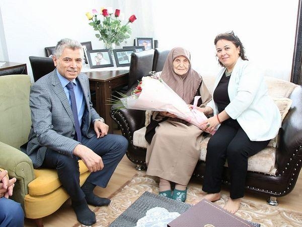 Fatma Varlıbaş ve Hidayet Ertural ile aileleri ziyaretten duydukları memnuniyeti dile getirirken kaymakam Yurt, "Koca çınarlarımıza Allah'tan sağlık ve sıhhat diliyorum" dedi.