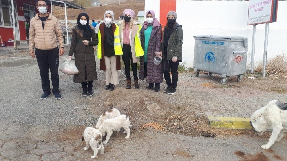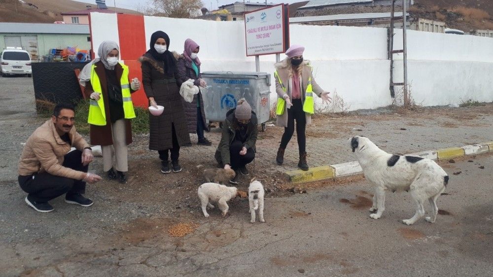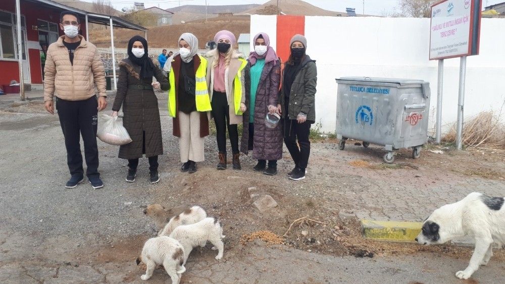 Iğdır'ın Tuzluca ilçesinde görev yapan öğretmenler ilçe veterineri eşliğinde sokak hayvanlarına mama dağıtımı yaptılar. Gönüllü öğretmenler diğer günlerin yanı sıra kısıtlamanın olduğu hafta sonu da sokak hayvanlarını beslemeye devam ettiler.