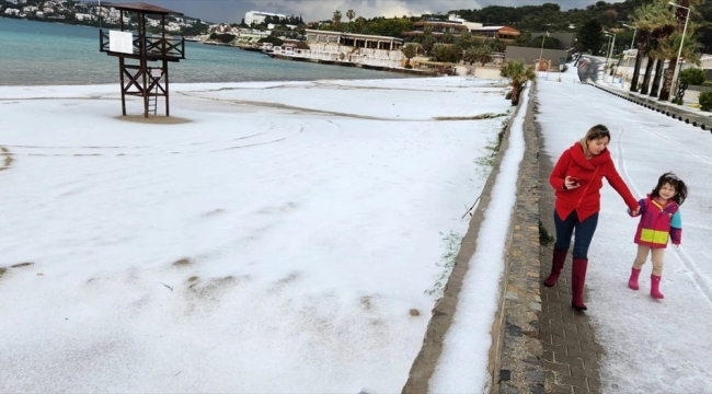 Çeşme ilçesinde, dün geceden beri etkisini gösteren sağanak yağışın ardından dolu yağdı. Dolunun etkisiyle Ilıca Plajı beyaza bürünürken, başkan Ekrem Oran'dan vatandaşlara uyarı geldi. Çeşme'de böyle bir yağış ilk kez görüldü.