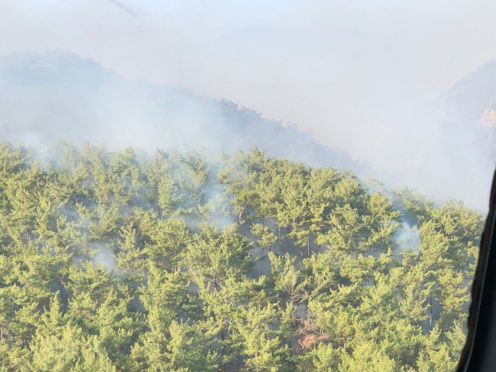 Muğla'nın Bodrum ve Milas ilçelerindeki yanan ormanlık alanlar havadan görüntülendi.