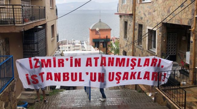 İzmir'de yaşayanların İstanbul takımına destek vermesine, İzmir firmalarının İstanbul takımlarına sponsor olmasına isyan eden Göztepeliler, firmalara tepki için açtıkları pankartı bu kez siyasiler, yerel yöneticiler ve bürokratlar için astı.