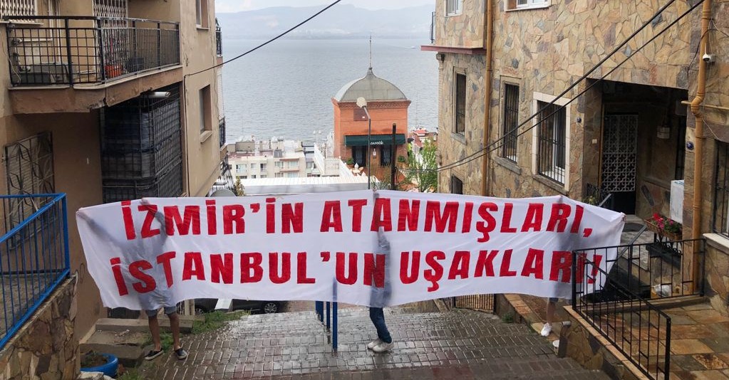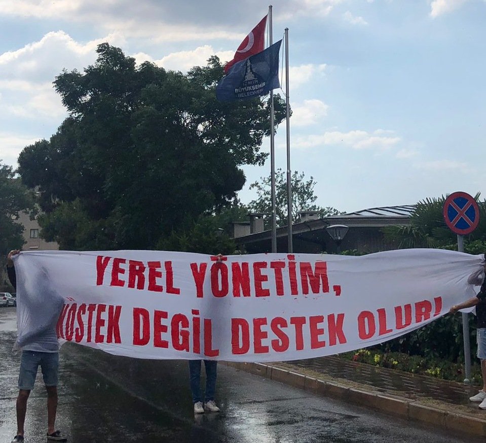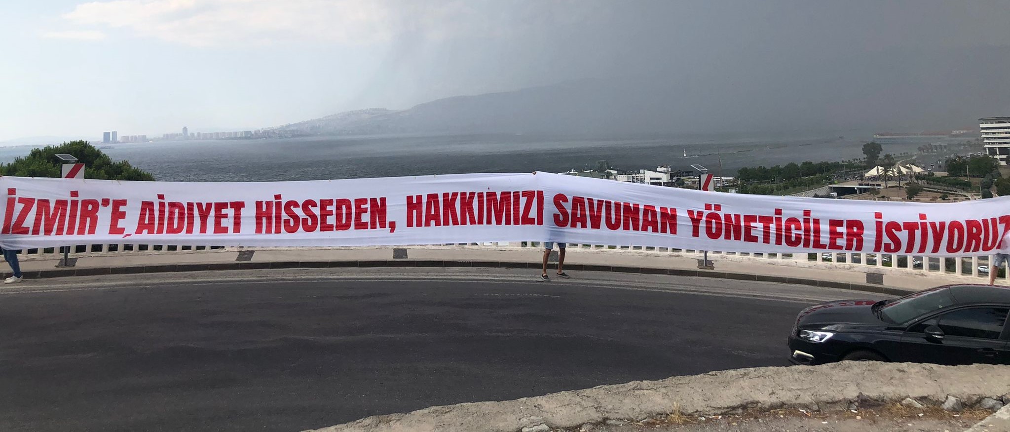 İzmir'de yaşayanların İstanbul takımına destek vermesine, İzmir firmalarının İstanbul takımlarına sponsor olmasına isyan eden Göztepeliler, firmalara tepki için açtıkları pankartı bu kez siyasiler, yerel yöneticiler ve bürokratlar için astı.