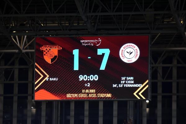 Spor Toto Süper Lig'e geçen hafta resmen veda eden Göztepe, Gürsel Aksel Stadı'nda en yakın rakiplerinden Çaykur Rizespor'a 7-1 yenilerek adeta tarihi hezimete uğradı.