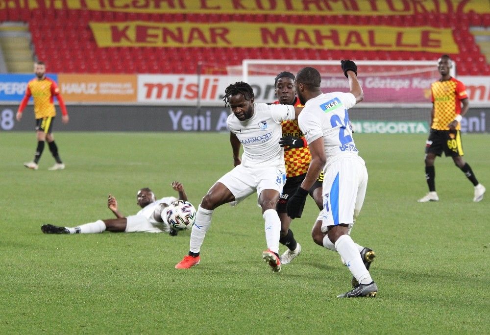 56. dakikada Cenk Ahmet'in ara pasında Emrah'tan seken topu önünde bulan Aatif, kaleciyle karşı karşıya kaldı. Sert vuruşunda kaleci İrfan topu kornere çeldi.