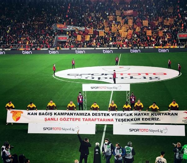 Göztepe- Fenerbahçe futbol takımları arasında dün Gürsel Aksel Stadyumu'nda oynan Süper Lig maçı öncesinde gerçekleştirilen kan bağış organizasyonuna taraftarlar, yoğun ilgi gösterdi. Göztepe Başkanı Mehmet Sepil, Asbaşkan Talat Papatya ve Yönetim Kurulu Üyeleri kan bağış aracını ziyaret ederek Kızılay çalışanlarına, Türk Kızılay İzmir Şubesi Başkanı Kerem Baykalmış'a, yapılan iş birliği kapsamında teşekkür etti. Taraftarların ilgi gösterdiği kampanyada, gün boyunca 1925 ünite kan bağışıyla rekor sayıya ulaşıldığı belirtildi.