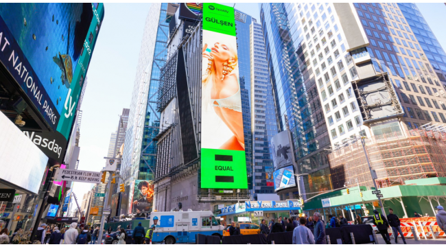 Güçlü kadın seslerini bir araya getiren Equal müzik listesinin kapağını süsleyen Gülşen'in fotoğrafı New York'un ünlü meydanında gün boyu gösterildi.