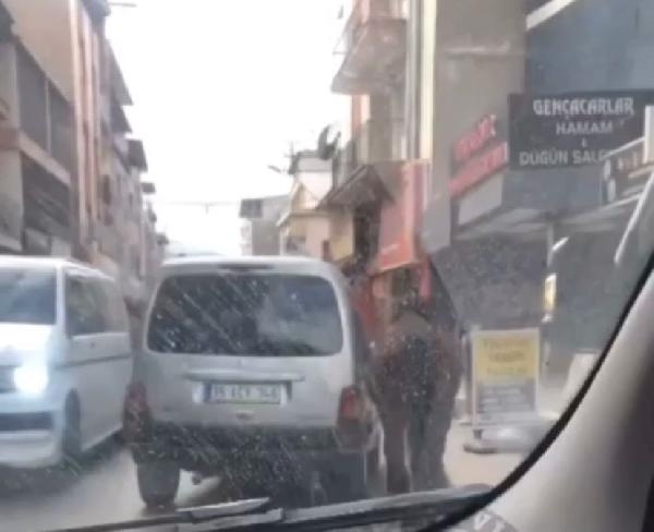 Hafif ticari aracına iple bağladığı atı peşinden koşturdu; o anlar kamerada
