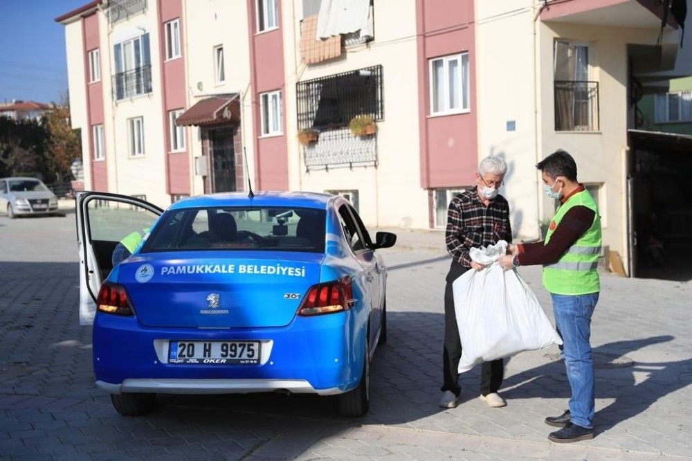 Denizli'de hafta sonunu kapsayan sokağa çıkma kısıtlamasında Pamukkale Belediyesi, 65 yaş üstü olup yalnız yaşayan vatandaşların taleplerini yerine getirdi