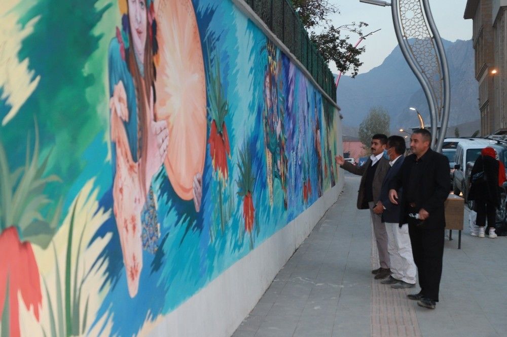 Hakkari Belediyesi, Konak Caddesi'ndeki istinat duvarına yaptırdığı resimlerle kent merkezine ayrı bir renk kattı.