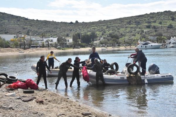 MUĞLA'nın Bodrum ilçesinde, 'Denize En Çok Mavi Yakışır' sloganıyla 2015 yılından beri yapılan deniz dibi ve kıyı temizliği etkinliğinin bu yılki ikinci durağı Gümbet Plajı oldu. Hem kıyıda hem de dalgıçlar tarafından denizde yapılan temizlik çalışmasında otomobil lastiğinden halıya, içki şişesinden klozete, ısıtıcıdan yağ tenekelerine kadar toplam 1 ton katı atık toplandı.