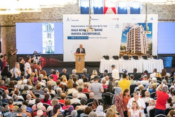 İzmir Büyükşehir Belediyesi'nin depremzedeler için hayata geçirdiği ve Türkiye'de ilk kez uygulanacak Halk Konut projesi başlatıldı. 30 Ekim İzmir depreminde orta hasar alan ve ardından yıkılan Bayraklı ilçesindeki Dilber Apartmanı sakinlerinin kurduğu Halk Konut 1 Yapı Kooperatifi temsilcileriyle, İzmir Büyükşehir Belediyesi şirketleri EGEŞEHİR AŞ ve İZBETON AŞ ile Bayraklı Belediyesi şirketi BAYBEL AŞ'nin oluşturduğu ortak girişim yetkilileri arasında tarihi sözleşme imzalandı. Sözleşmeyle İzmir Büyükşehir Belediyesi ve Bayraklı Belediyesi, depremzedelerin kendi konutlarını yapabilmesi için belediye güvencesi ve teknik destek verecek.