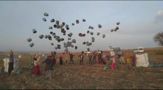 Farklı illerden tarlada çalışmak için gelen işçiler, yoğun süren patates hasadının sona ermesini şarkılar ve kovalarla kutladı. O anlar sosyal medyada büyük beğeni topladı.