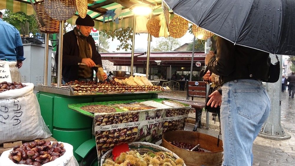Gal arısı hastalığı sebebiyle üretimi düşüp, yurtdışından da müthiş talep gelince kestanenin fiyatı tezgahta 40 lirayı buldu. Kestane kebabın tanesiyse 1 liradan satılıyor