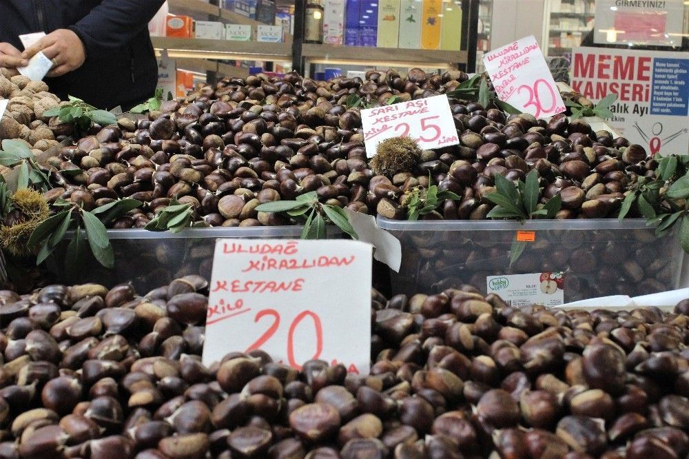 Tarihi Tuzpazarı'nda kestane satışı yapan esnaflar, "Eskiden Bursa'dan 400 ton çıkan kestane 30 tona düştü. Kaliteli kestane bulmak artık zor. Kebaplık kestaneyi 30 ila 40 lira arasında satıyoruz. Artık Bursa'da kestane yok, kestane Aydın'dan geliyor. Hastalıktan dolayı rekolte düştü. Bir de ihracat çok fazla. Şekerlemede kullanan firmalar da çok talep ediyor. Artık kestaneyi 250 ve 500 gram olarak satıyoruz. Bu yıl kestanenin fiyatı 50 liraya kadar çıkar" dedi.