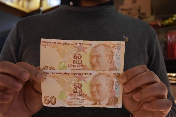 İZMİR'in Buca ilçesinde pastane işletmecisi Batuhan Akcan (36), hatalı basım olan 50 liralık banknotu 75 bin liradan satışa çıkardı. Akcan, "İlk gördüğümde parayı sahte sandım. Ancak daha sonra hatalı basım olduğunu öğrendim" dedi.