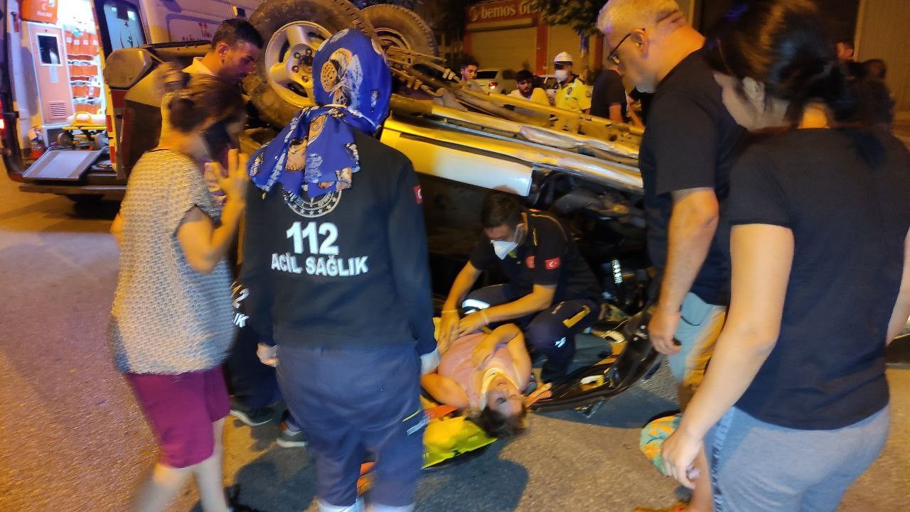 Hatalı sollama yaptı taklalar attı, 5 yaralı